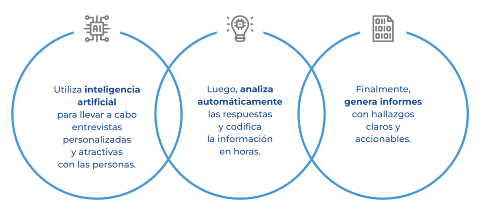 Convierte tus estudios de mercado en conversaciones reales, ágiles y automatizadas impulsadas por inteligencia artificial.